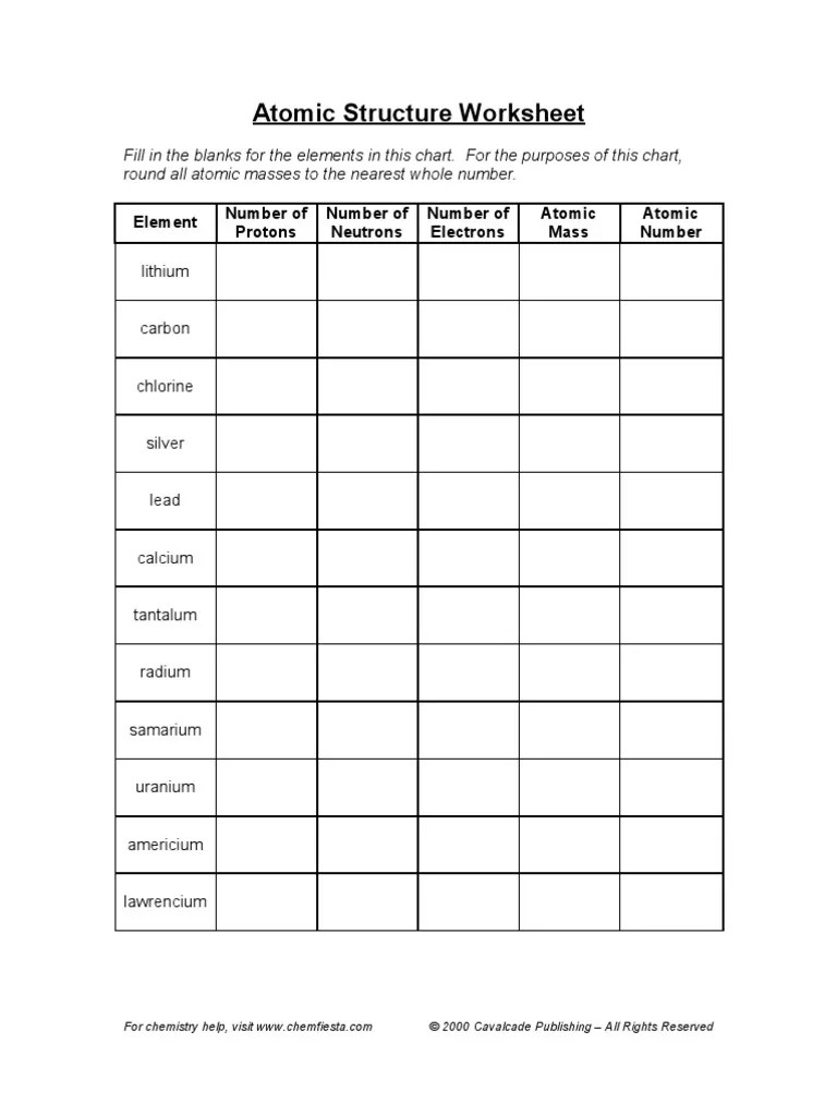 Fill in the blanks for the elements in this chart. What is the atomic number of the atom in the diagram above? The number of protons in one atom of an element determines the atom's. Honors chemistry summer assignment atomic structure worksheet. The number of protons in one atom of an element determines the atom's.
